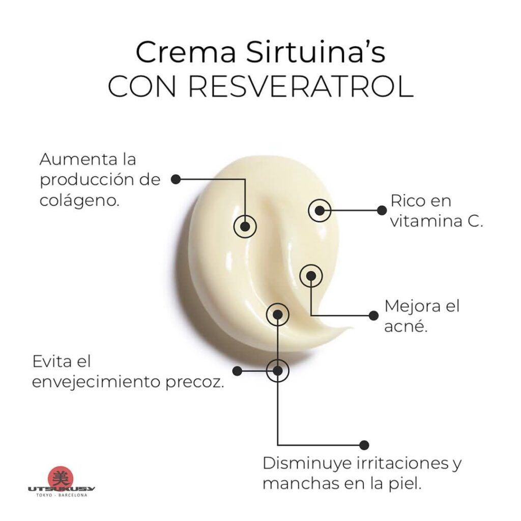 Crema facial con Sirtuinas de Vitis Vinifera con potente acción antioxidante que ayuda a mejorar la longevidad celular y reducir los signos del envejecimiento.